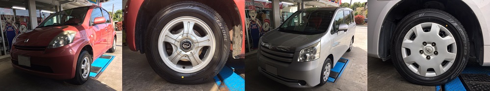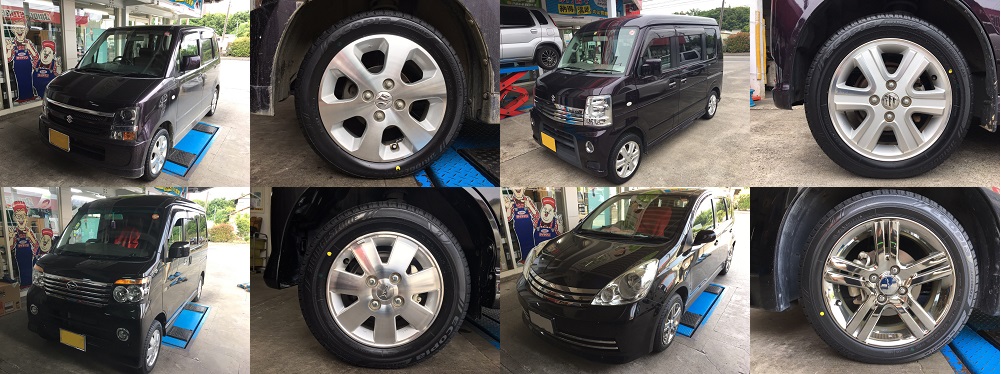 スズキのワゴンR・エブリー・ダイハツのアトレー・日産のティ―ダ・トヨタのパッソににブリヂストンNH100cを装着頂きました。